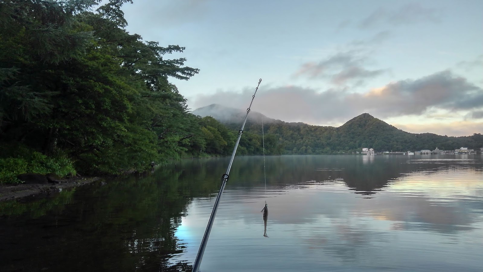 | 日の出直前の榛名湖。釣り人のテンションMAXの瞬間です |