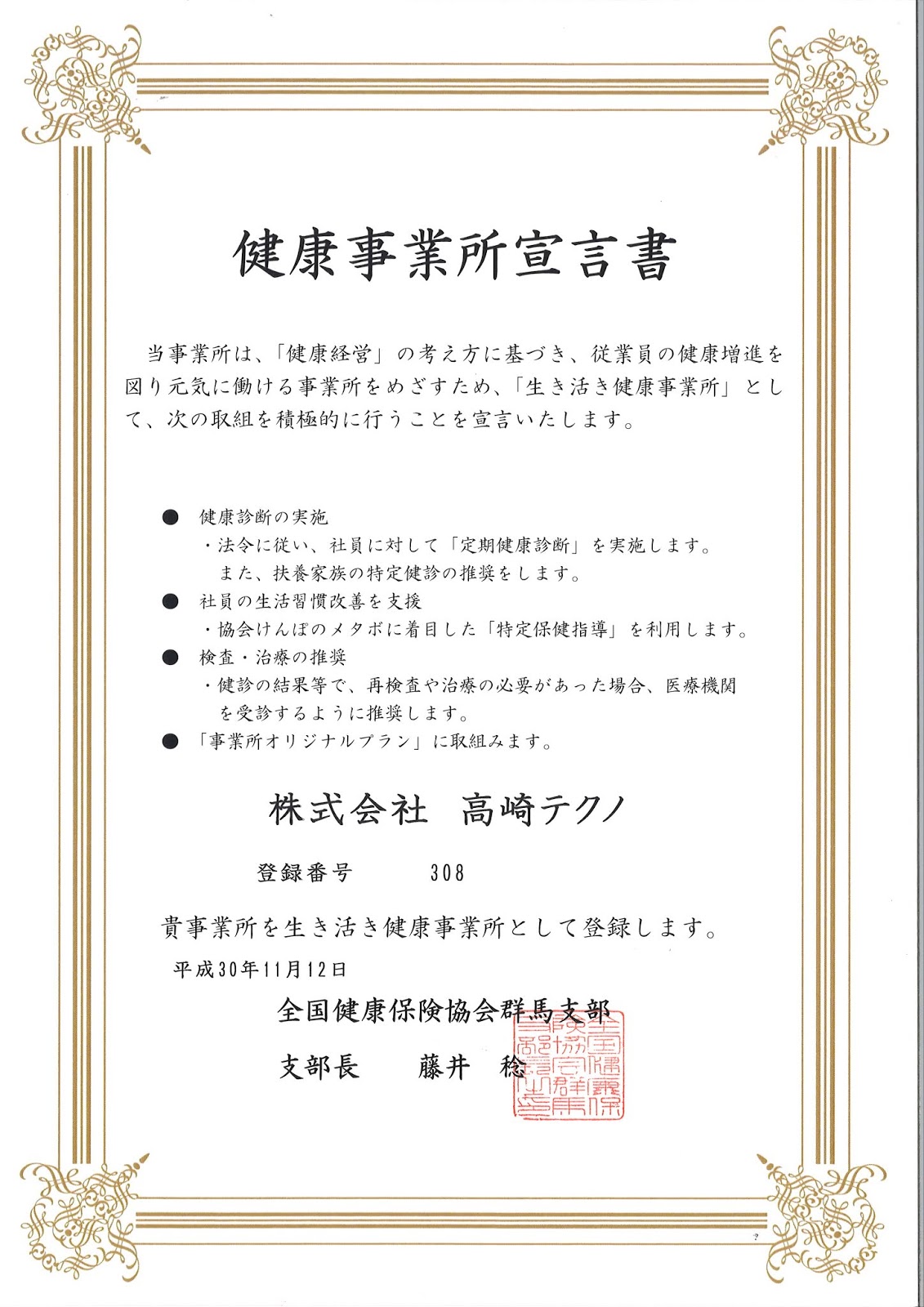 さてそんな話はさておき、当社は先週「生き活き健康事業所宣言」をしました。スタッフの健康は会社にとっても組織の活性化、ひいては生産性や業績の向上につながると思いエントリーしました。