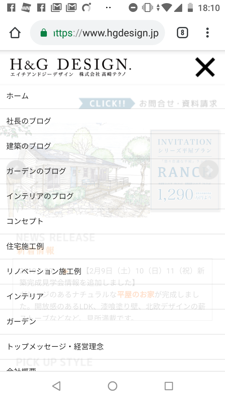 PC版では”blog”というボタンでブログがプルダウンメニューとして出るのですがスマホ版を作る際にブログボタンがずーーーーーっと下の方へ移動していたのです。
