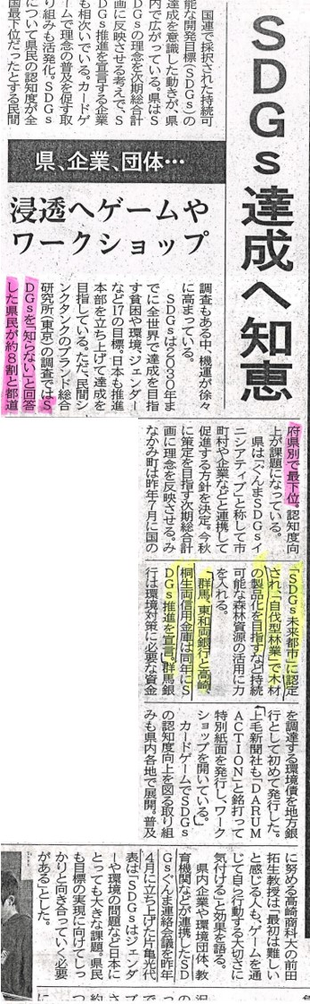 まずいちばん衝撃的だったのがコピーをいただいた上毛新聞の記事でした。なんと群馬県はSDGsの認知度調査で県民の8割が「SDGsを知らない」と答えて都道府県別で最下位だったそうです😨「出たーだからグンマー」と言われそうですね。これはいかんです。