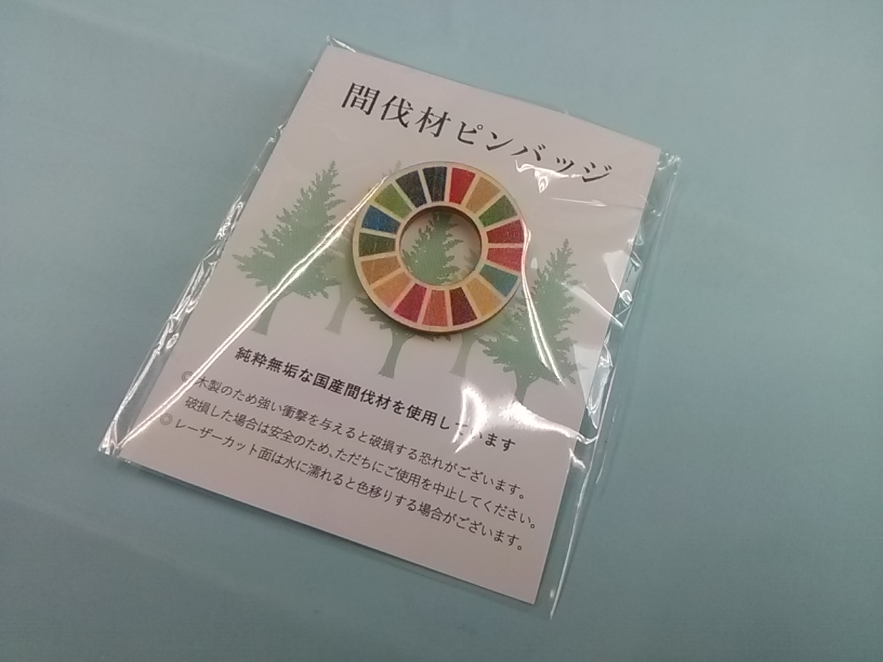 さらに「スタッフにはこれからピンバッジを配ろうと思ってるんですよ」とお話したら「それなら御社にぴったりなのがありますよ」と間伐材でできたピンバッジを紹介していただきました。木造住宅を主たる事業とする当社にはまさにピッタリ!Amazonでどれにしたらいいのかなーと迷っていたので助かりました。これもすでに発注済みです。
