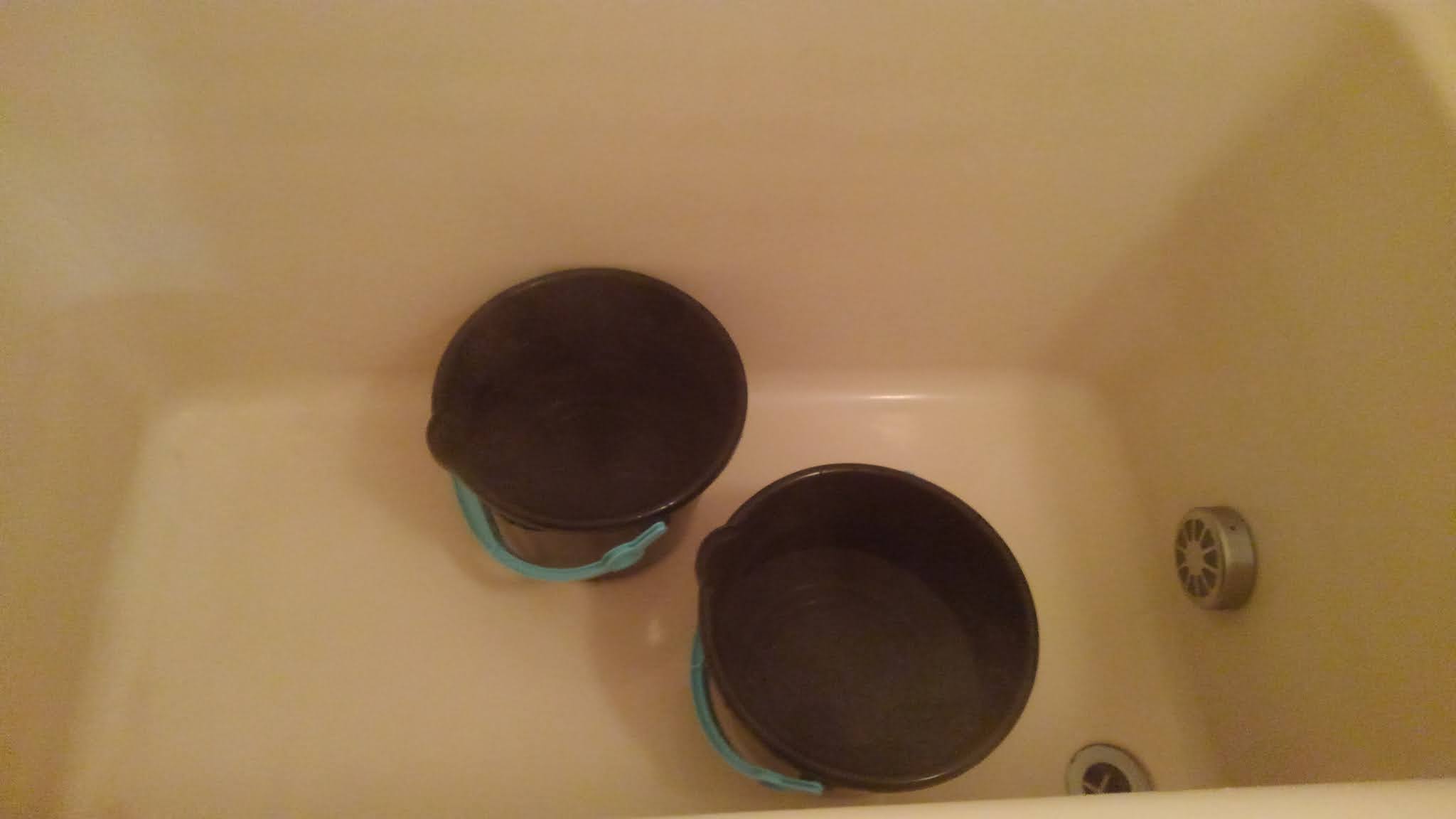 で、家に帰ったら「先に風呂に入りな」とこれです。百均でバケツを3つほど購入して、そこにキッチンのやかんで沸かした熱湯をためておいて「水でうすめて使いな」ときました。女子部はすでにこれで全員入っていたようですがやや不機嫌。