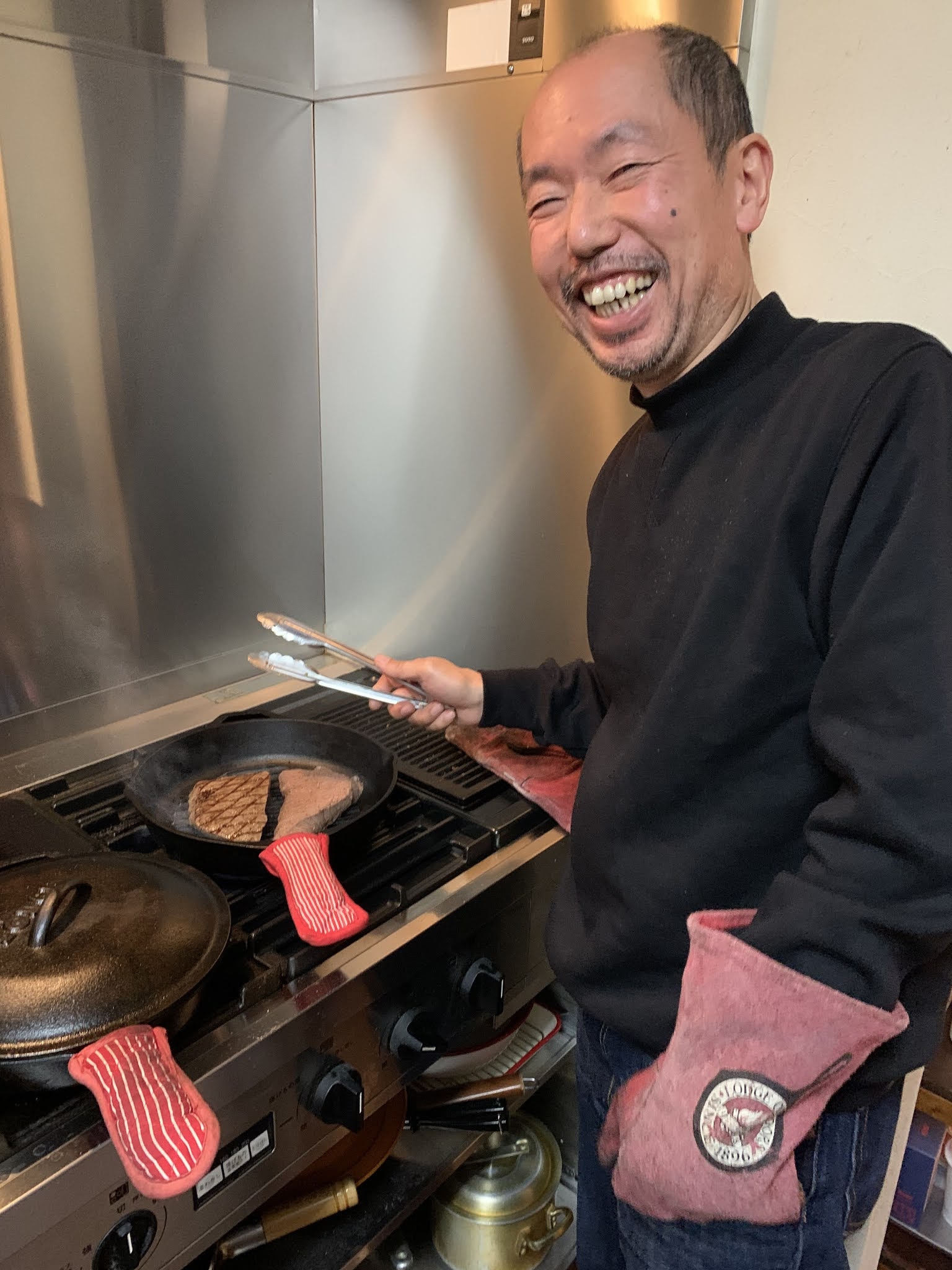 そこで私が出資者として提案したのが「アメリカのロードサイドのステーキハウスで出る雑なステーキ」というテーマ。イメージは鉄板に網目焼きのついた肉がドーン、赤身で固い肉にバターが乗っかって適当に塩っぽいスパイスが振られていて。付け合わせはマッシュポテトとインゲンとコーンぐらいで十分かな、と。