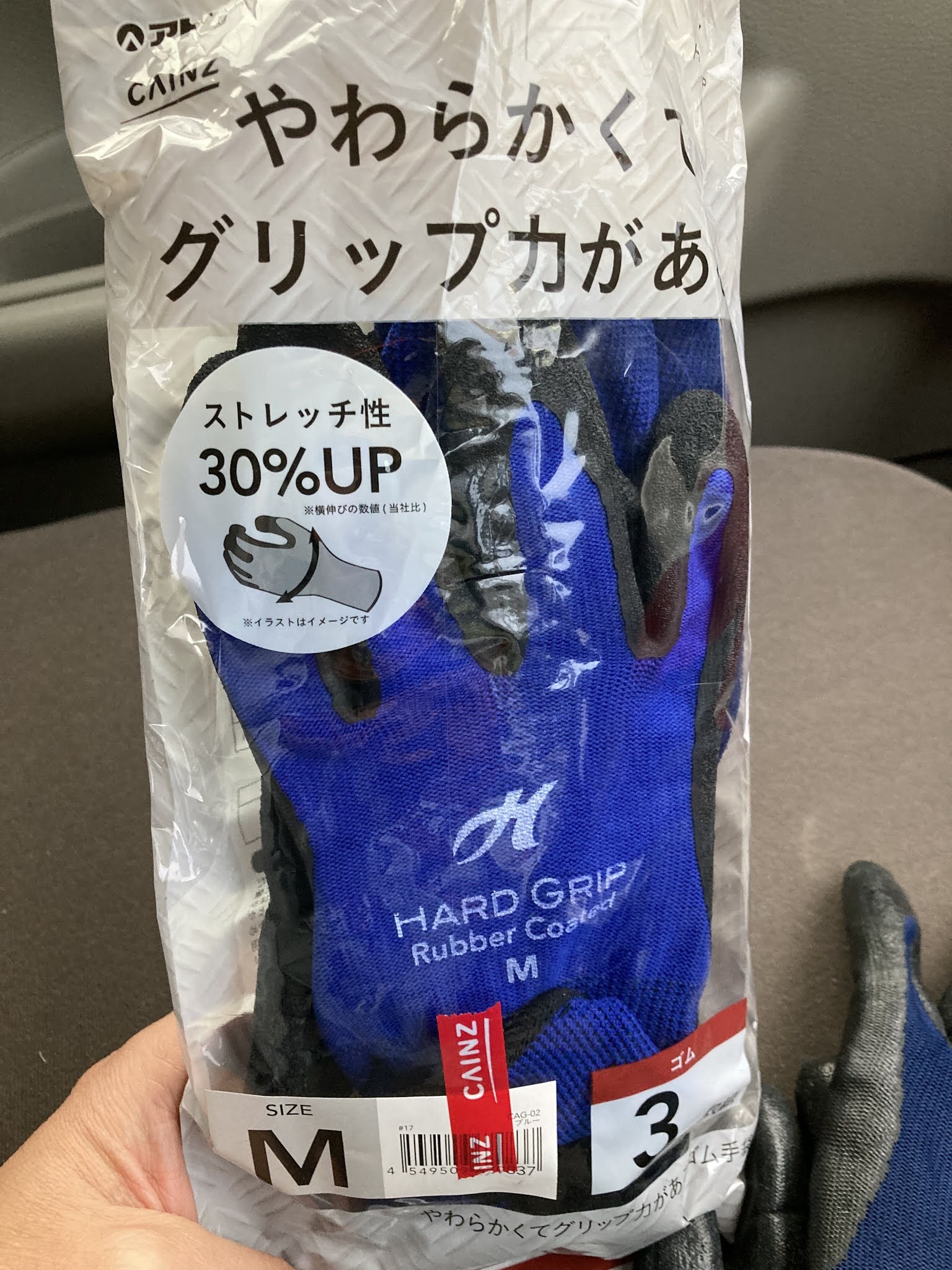 私はいつもカインズで決まった手袋を買うのですがその商品がリニューアルしていてすごいなと感じたのでご紹介します。以前のタイプと比べて”ストレッチ性30%up”はさほど実感は無いのですが手のひら側のゴムが従来のツルツルタイプから細かなリブタイプに変更されて”グリップ力がある”感は各段に向上しました。このシリーズコスパも良くおススメです(^^♪