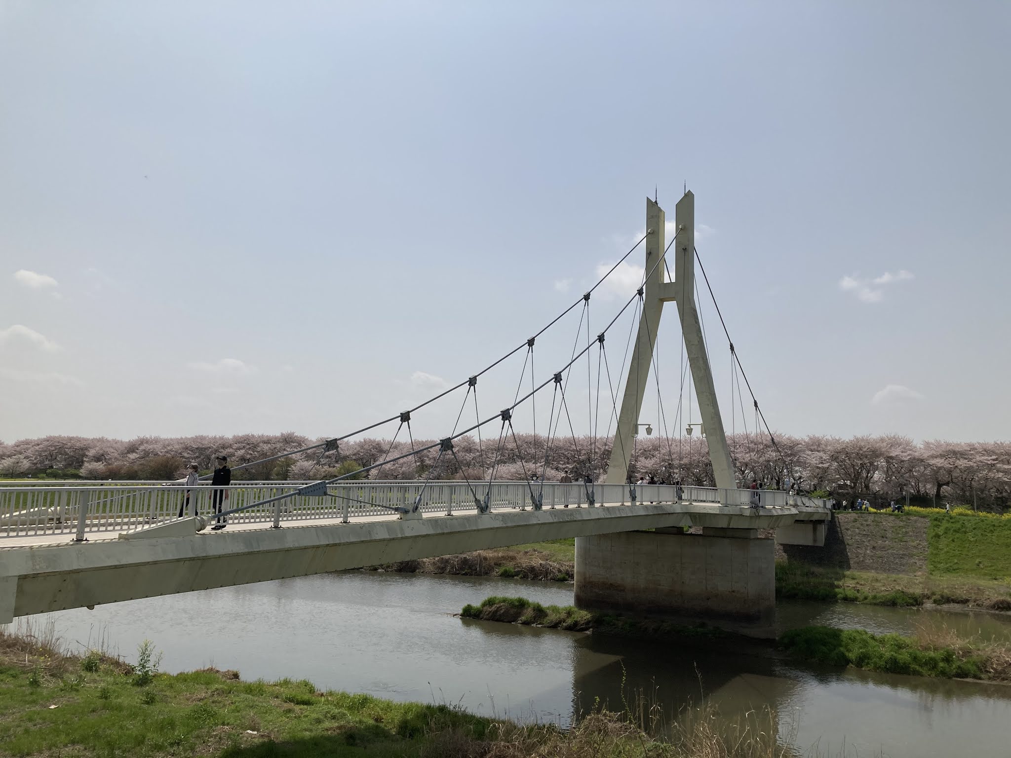 | 橋の向こうに見事な桜並木を発見 |