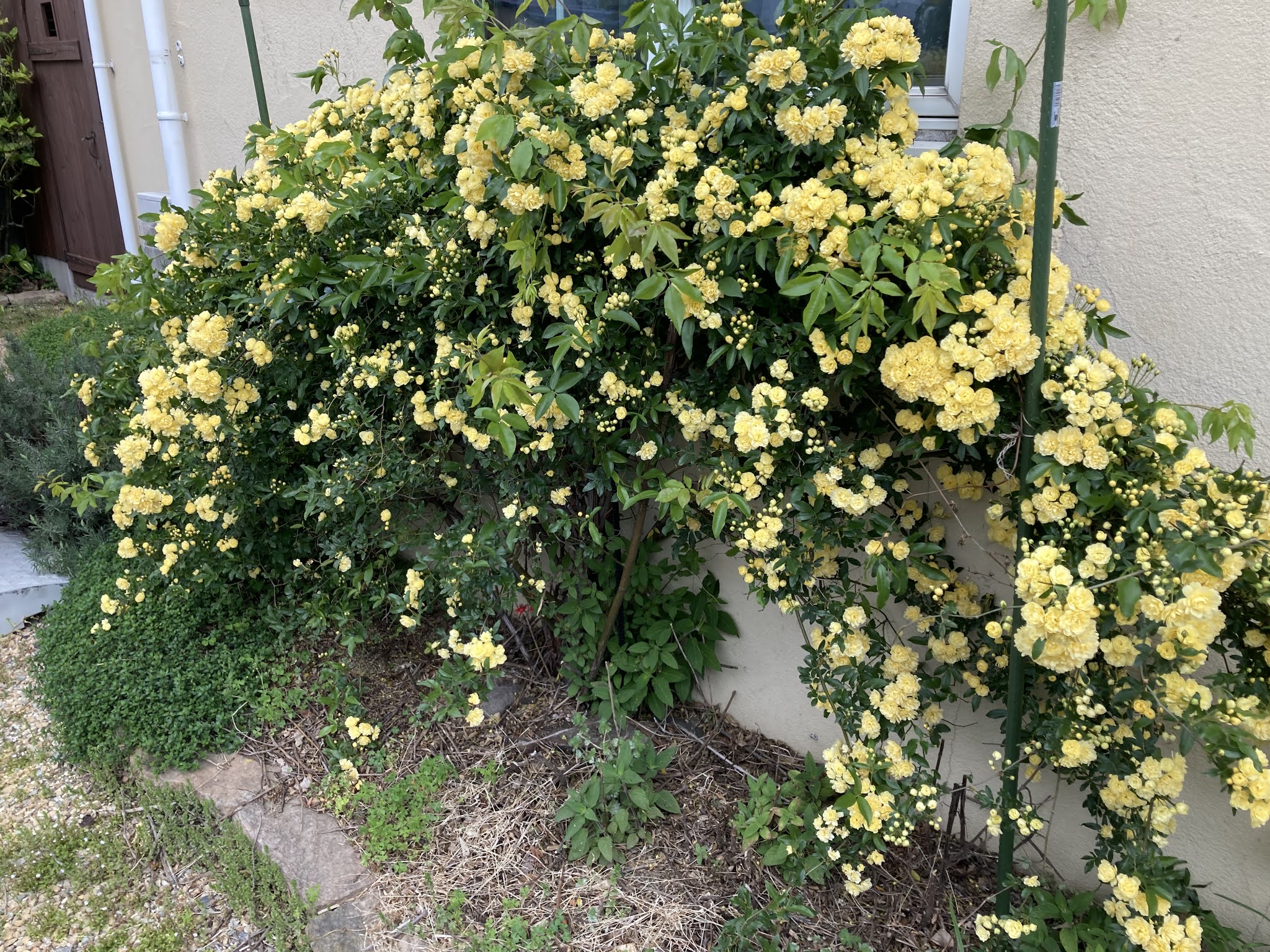 ここ数日は少し冷え込んでいますが今日の雨と来週の暖かさで庭の植物たちも一気に伸びてくることでしょう。我が家のモッコウバラも今満開を迎えています(写真は数日前に撮ったもの)。