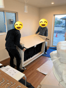 あらかじめ応援を依頼していた、今回賃貸の管理をお願いしている同じリクシル不動産ショップ仲間のトウショウレックス様の若手?2名の力を借りて、半日かけて完成しました(´Д⊂ヽ