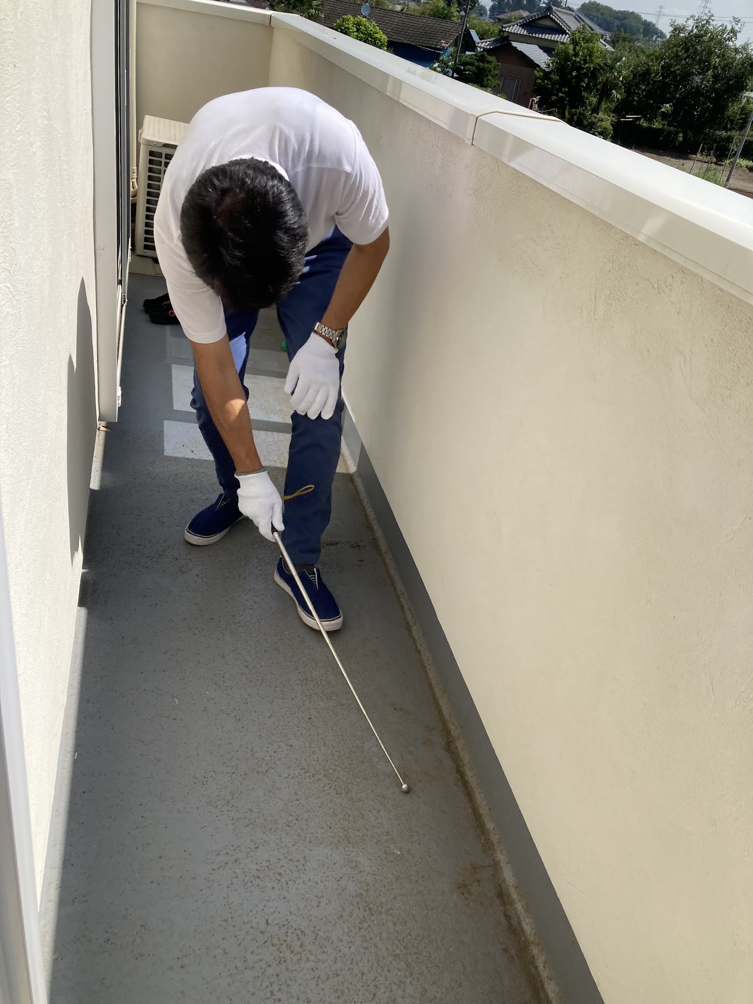 先週書いた特殊遮熱塗装シポテックスクール®の工事も雨の日は洗浄、晴れたらケレンと天気予報とにらめっこしながら進めていますが35℃を超える日はとにかく安全第一。