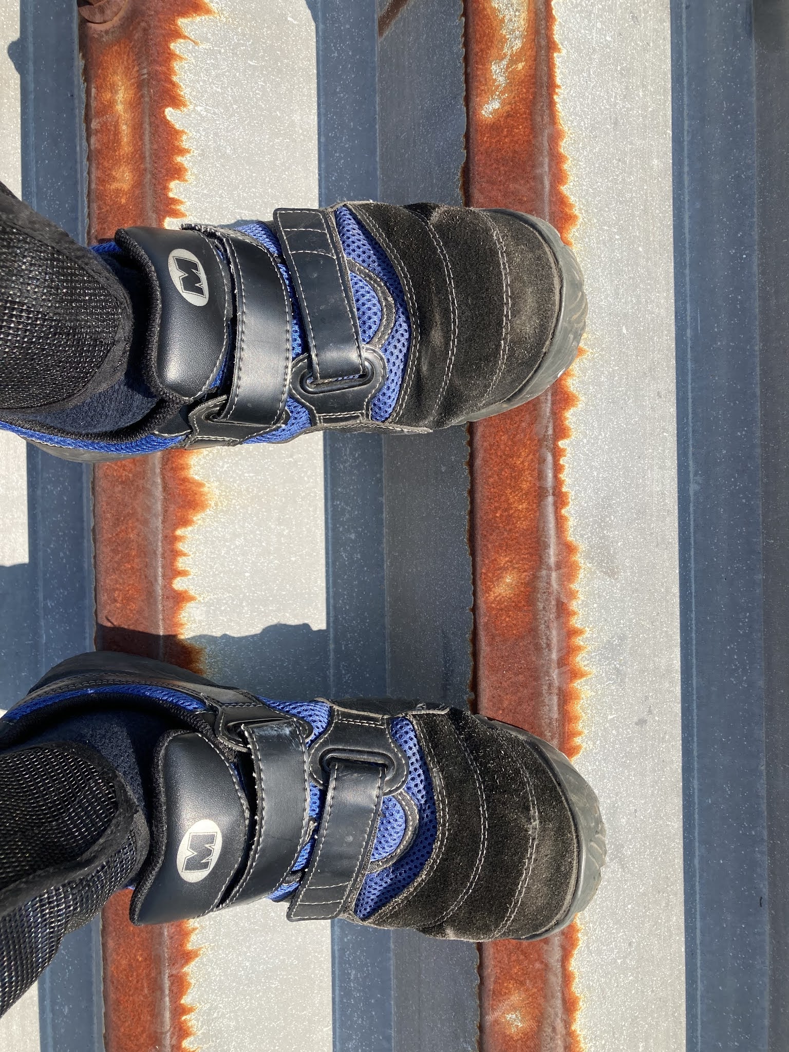 熱中症対策でほぼ1時間毎に休憩と問診(休憩中の雑談ですがちゃんと会話ができているか確認します)を実施。それでも塗装前の折半屋根(工場や倉庫などの金属屋根のこと)は表面温度が60℃~70℃まで上がるので上半身は空調服でなんとかなるのですが足の裏が低温やけど?のようになり家に帰ってもジンジンしますね。なので最近クルマに乗る時はクーラーなのに”足元吹き出し”の設定で走っています。足裏の放熱、重要です。