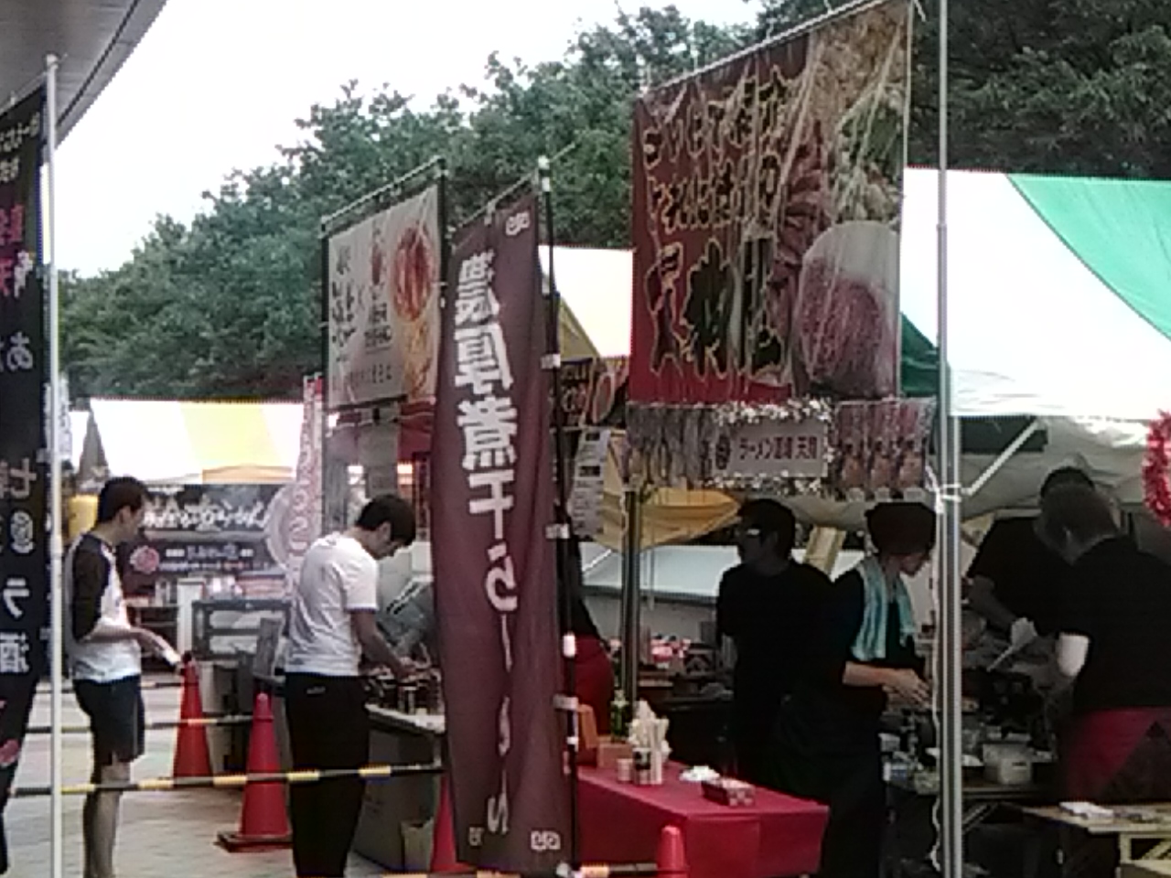 屋外イベントのぐんまらーめんコレクション2019も大盛況。この写真を撮ったころはまだ自由に選べたのですが今はもう大行列。お腹を空かせて待って食べるのもまたいいですよね。幸い今日は暑さはさほどでもなさそうです。