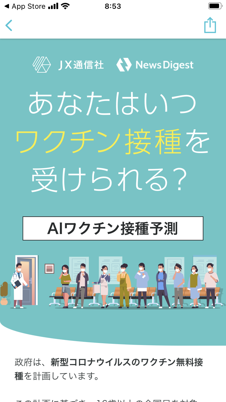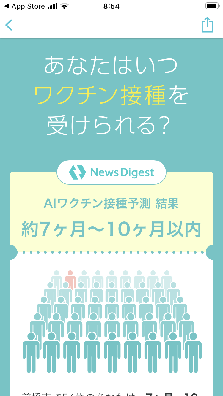 で、その順番がいつ頃になりそうかというのをAIが診断しますというアプリを今朝テレビで紹介していたので早速興味本位ですが使って診断してみました。→ アプリをダウンロードできる「ニュースダイジェスト」のページ