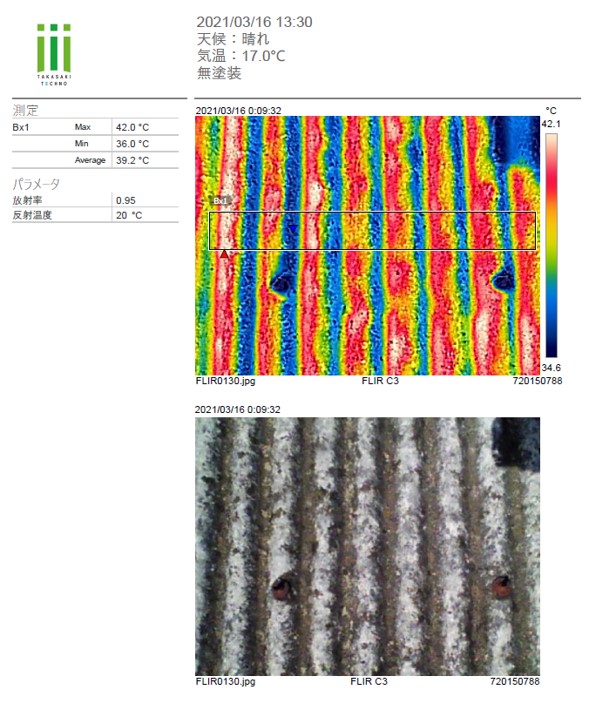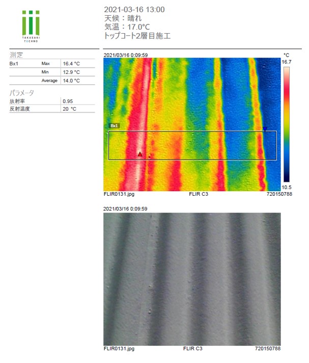 今月1日に着工した工場屋根の特殊遮熱塗装(シポテックスクール工法®と言います)工事が先日完工となりました。お引渡し前には必ずお客様に性能確認をしていただくのですが3月ってどうなの??と思われるかもしれませんが安心してください。しっかり性能出ています。