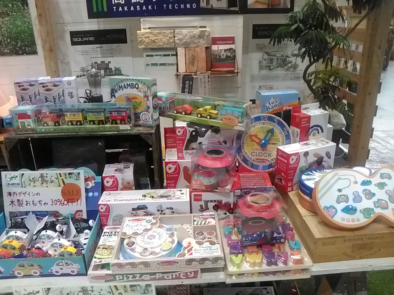 今回はちょこっとですが海外の木のおもちゃも販売しています。よく見ると30%オフの札が!?( ゚Д゚)